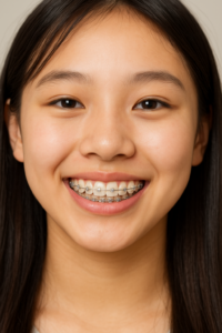 ただし、近年では透明や歯の色に近いセラミックブラケット、白いワイヤーなどもあり、かなり目立ちにくくすることが可能です。