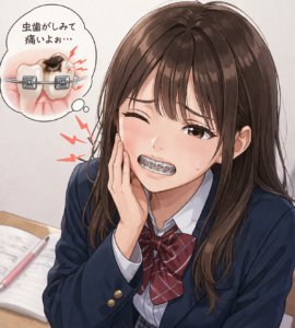 装置に気を取られて磨きにくくなり、結果として磨き残しが増えます。これが虫歯菌の温床となります。